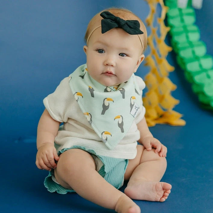 Each baby bandana bib comes with 2 nickel-free snaps that allow each bib to be adjustable in size to fit newborns and toddlers, with ages ranging from 3-26 months. The snaps are secure, making it difficult for infants and toddlers to unfasten but are easy for parents to snap on and off.