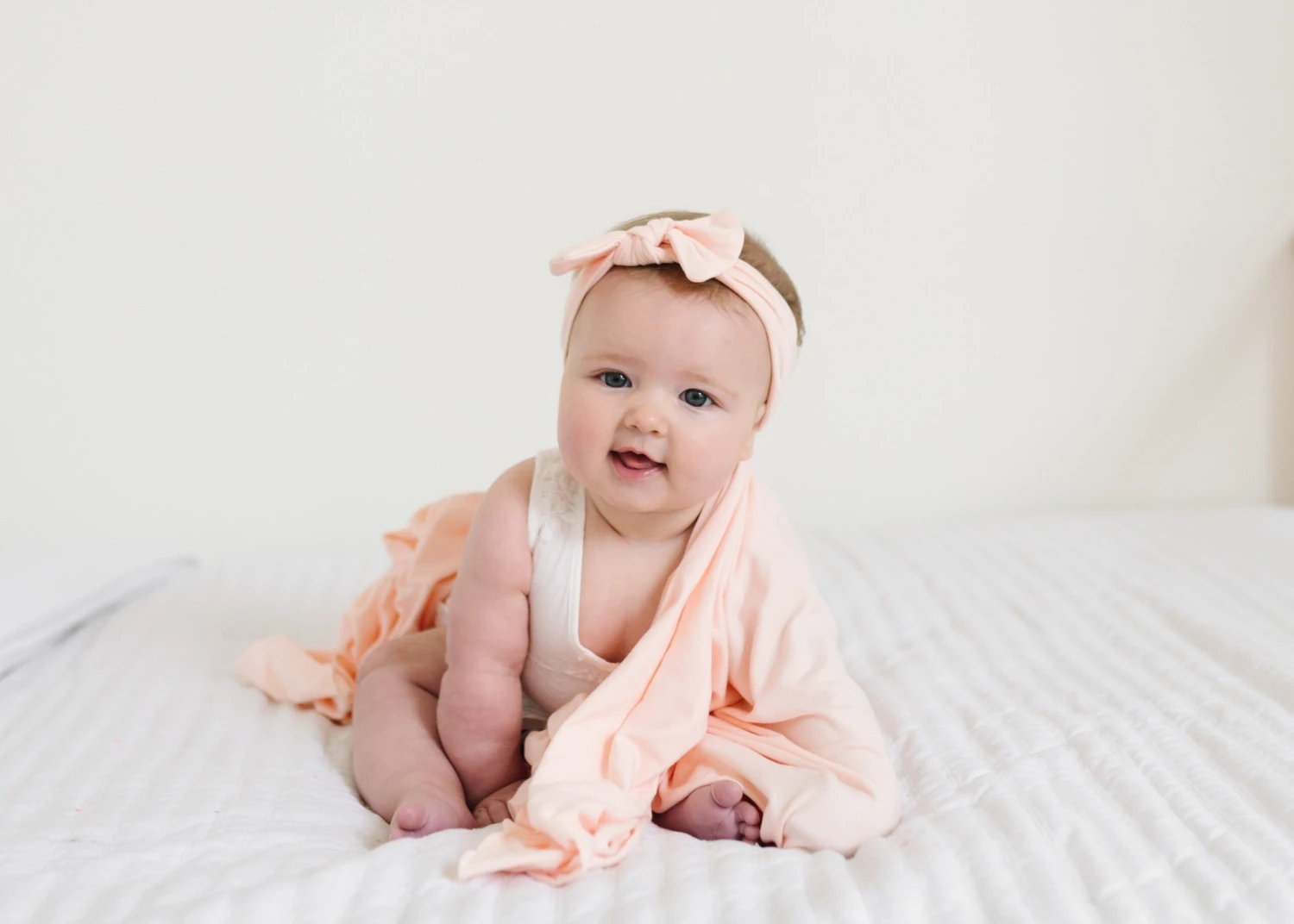 Copper Pearl Knit Headband Bow | Blush