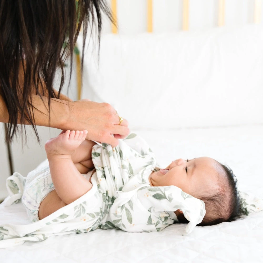 Made with the same premium knit fabric as our beloved swaddles, this soft and stretchy gown ties at the bottom for easy diaper changes—and has room to grow.