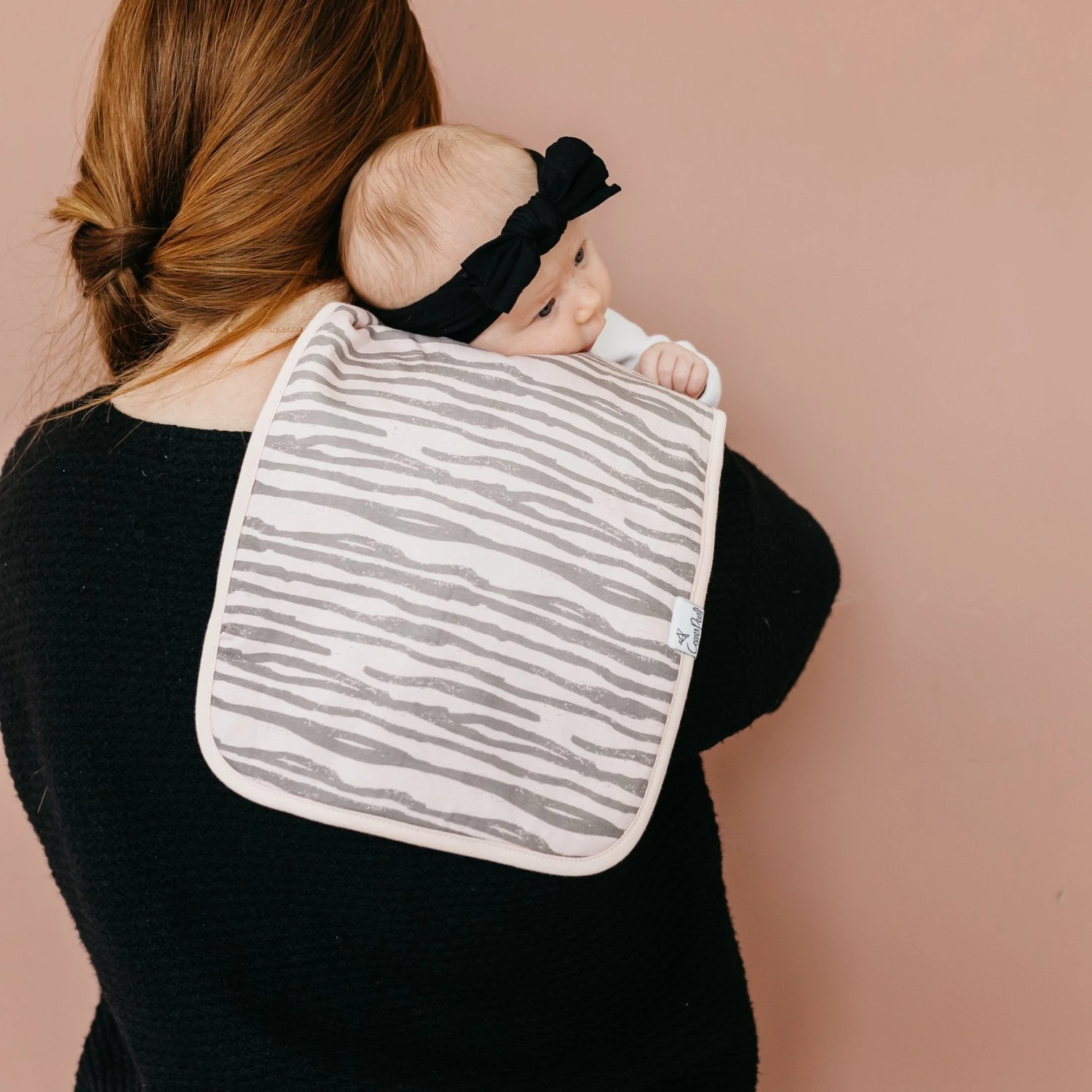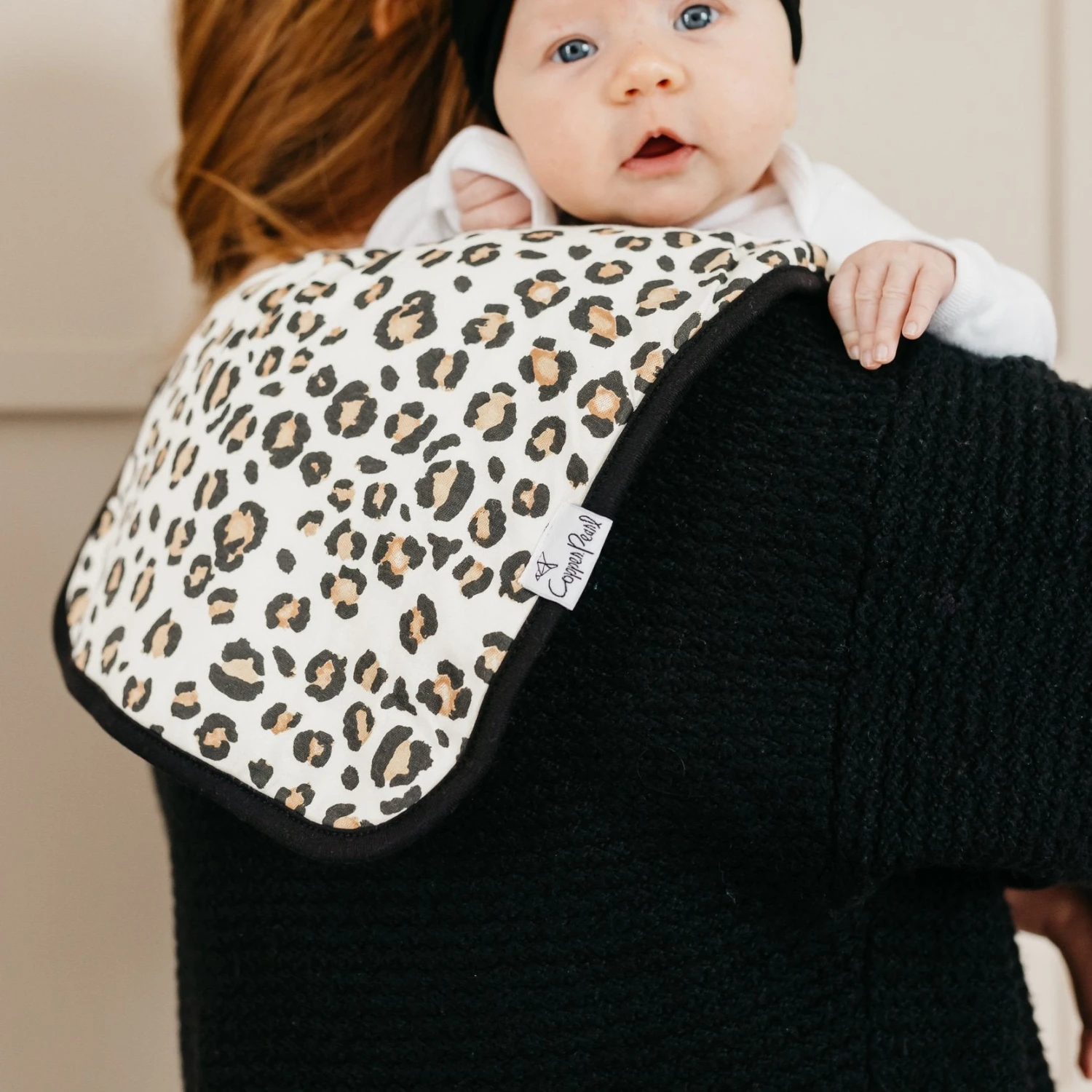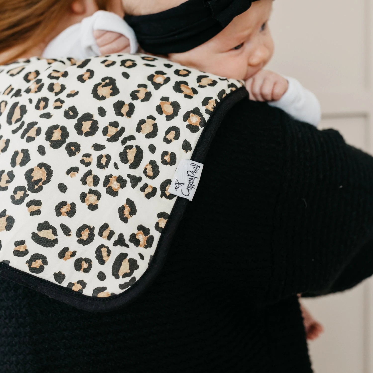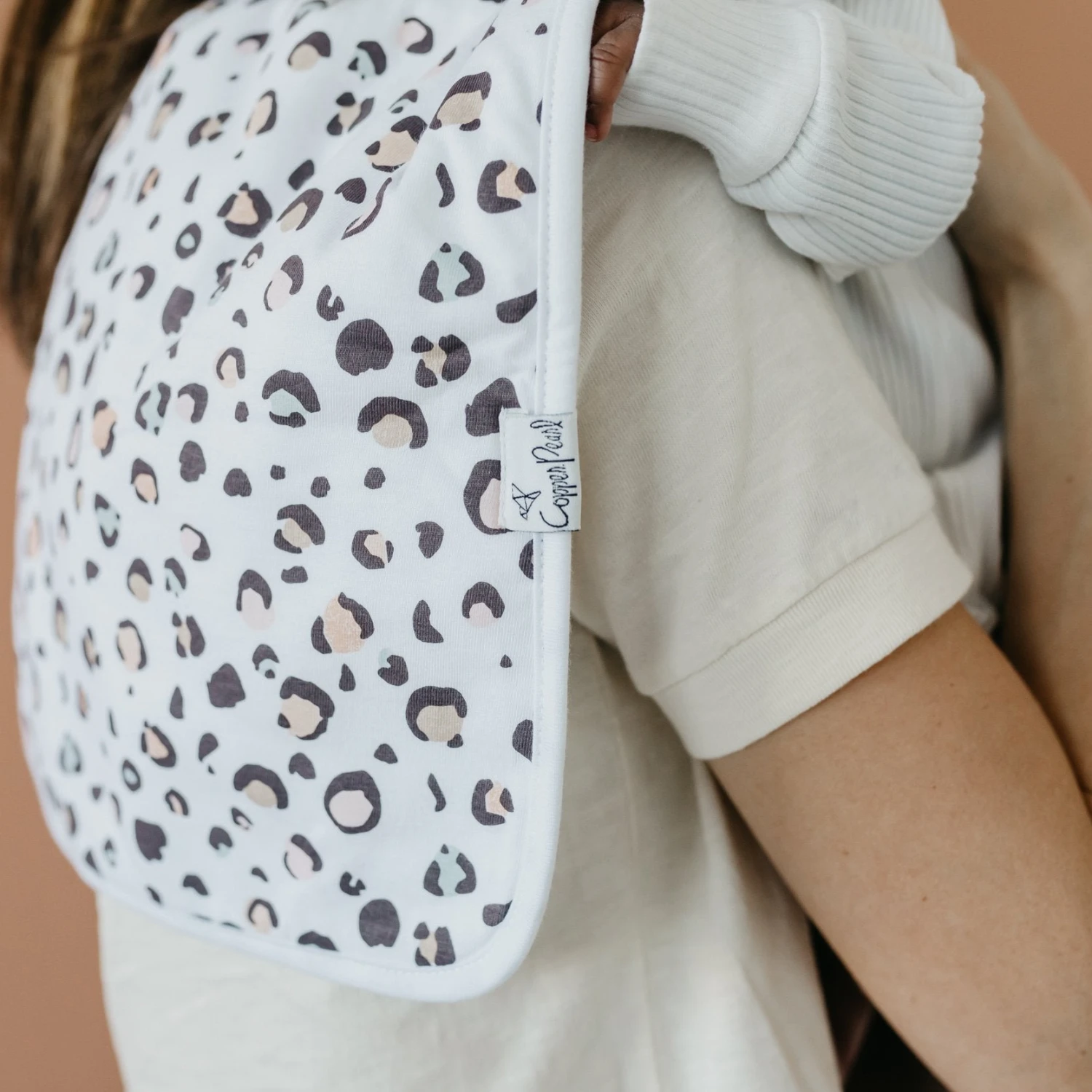 Copper Pearl’s burp cloths are designed with baby’s comfort in mind. That’s why we created them with 100% ultra-soft cotton layers on the front (patterned) and back (plain white). You can feel confident that baby will feel cozy against your shoulder while burping.