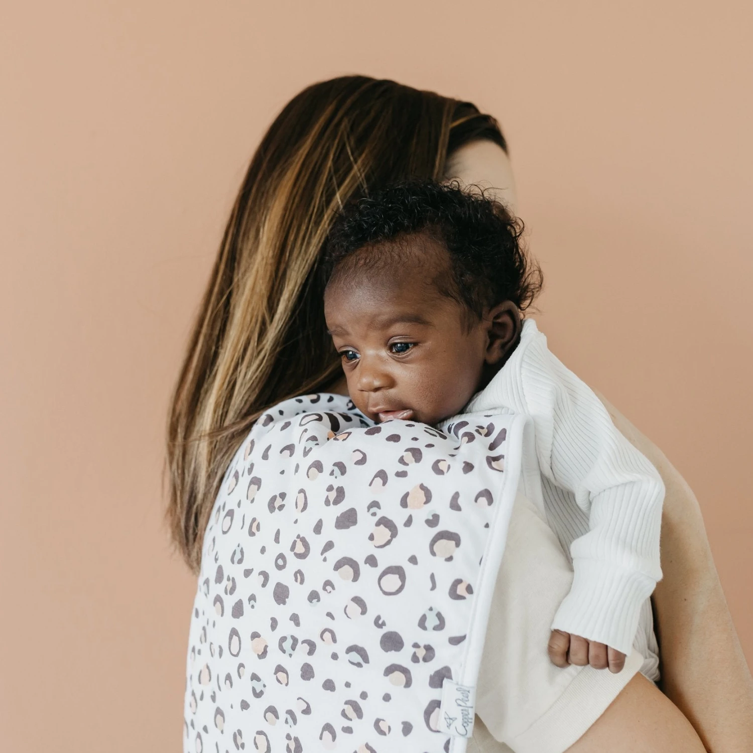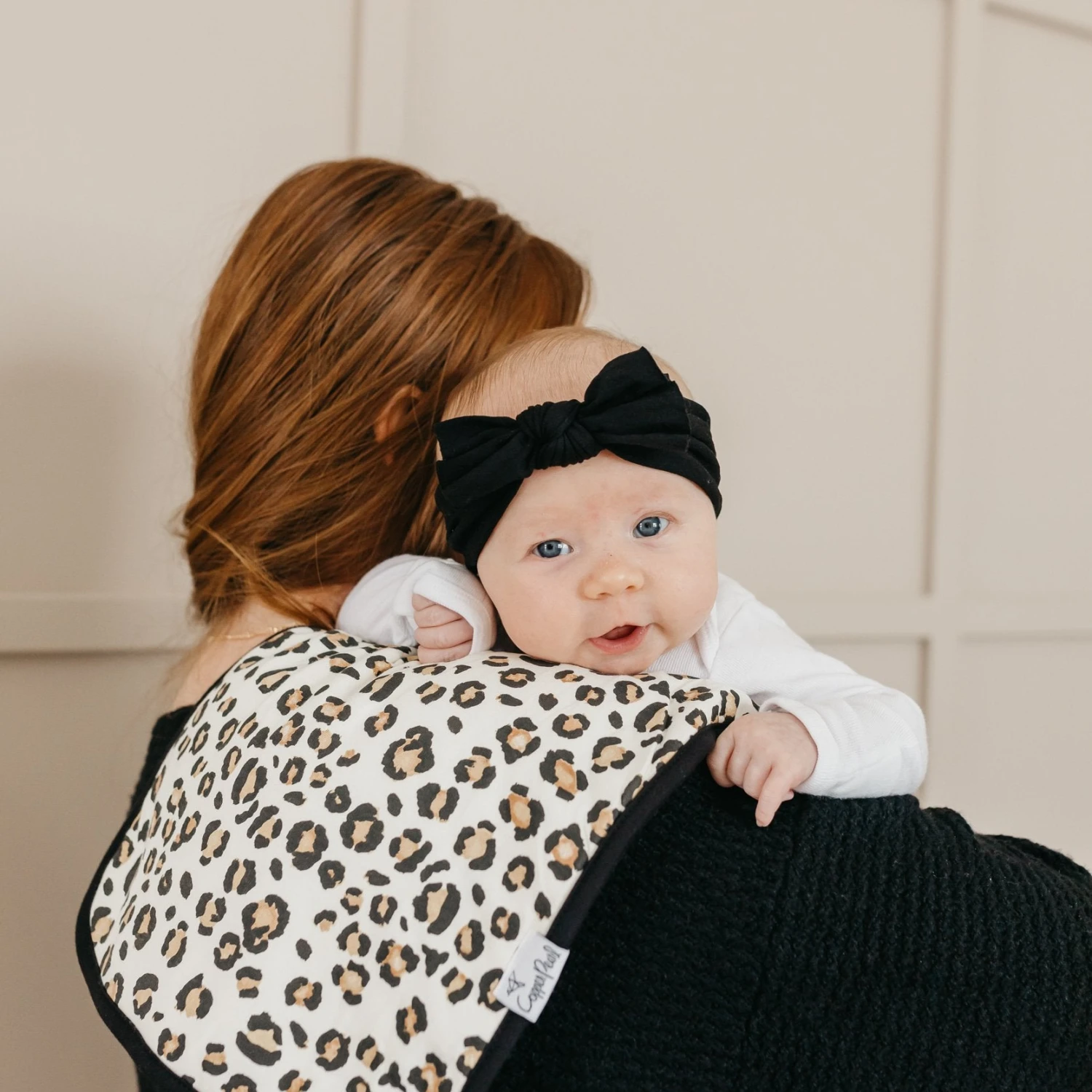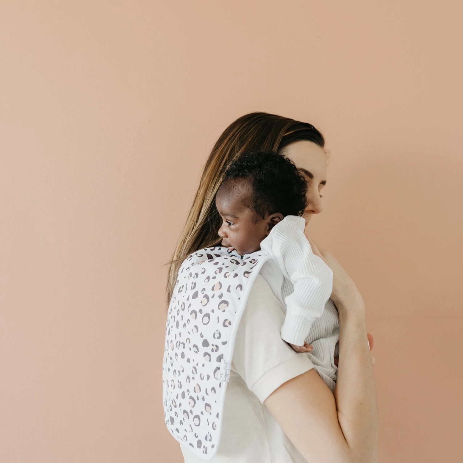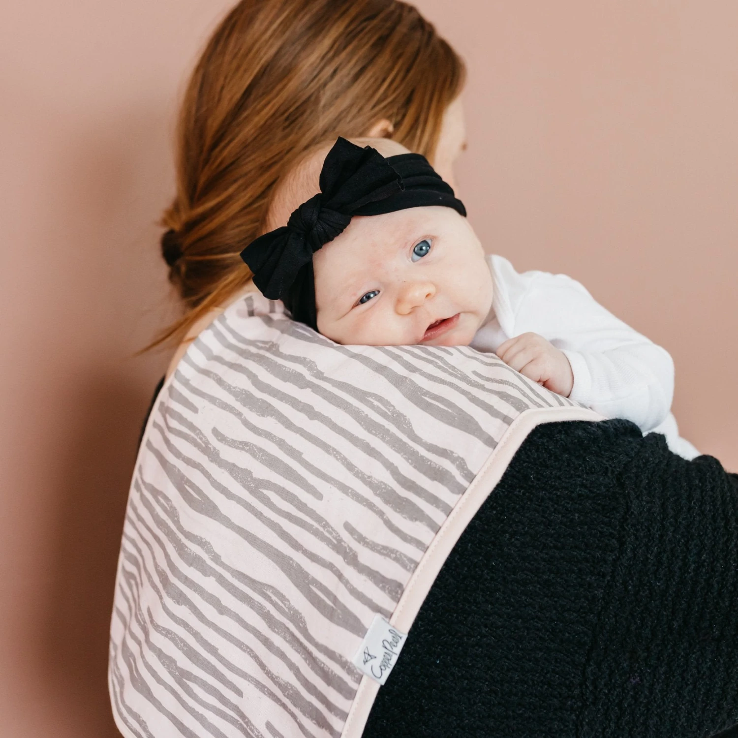 Copper Pearl’s burp cloths are designed with baby’s comfort in mind. That’s why we created them with 100% ultra-soft cotton layers on the front (patterned) and back (plain white). You can feel confident that baby will feel cozy against your shoulder while burping.