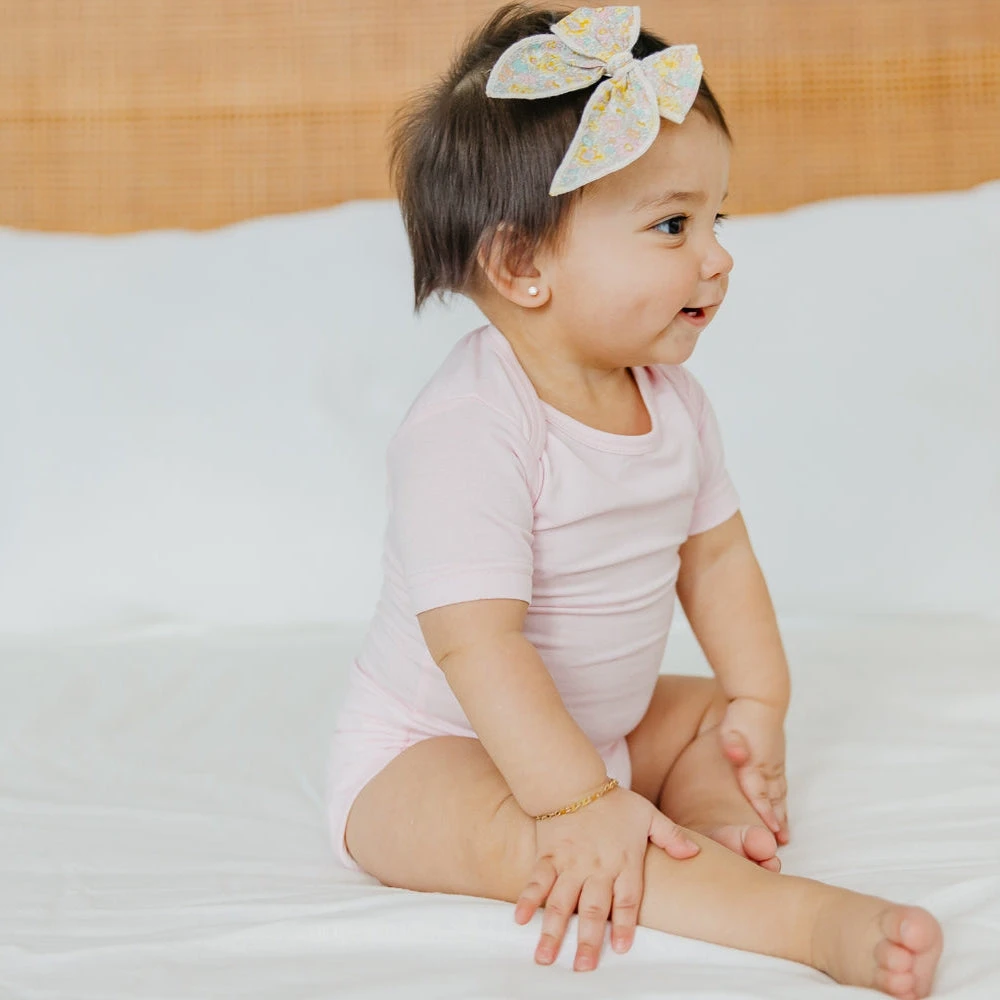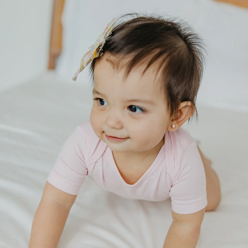 You can never have too many bodysuits. Featuring signature Copper Pearl prints and buttery soft fabric, these everyday basics feel anything but ordinary. Parents love the overlap shoulders for easy on and off.